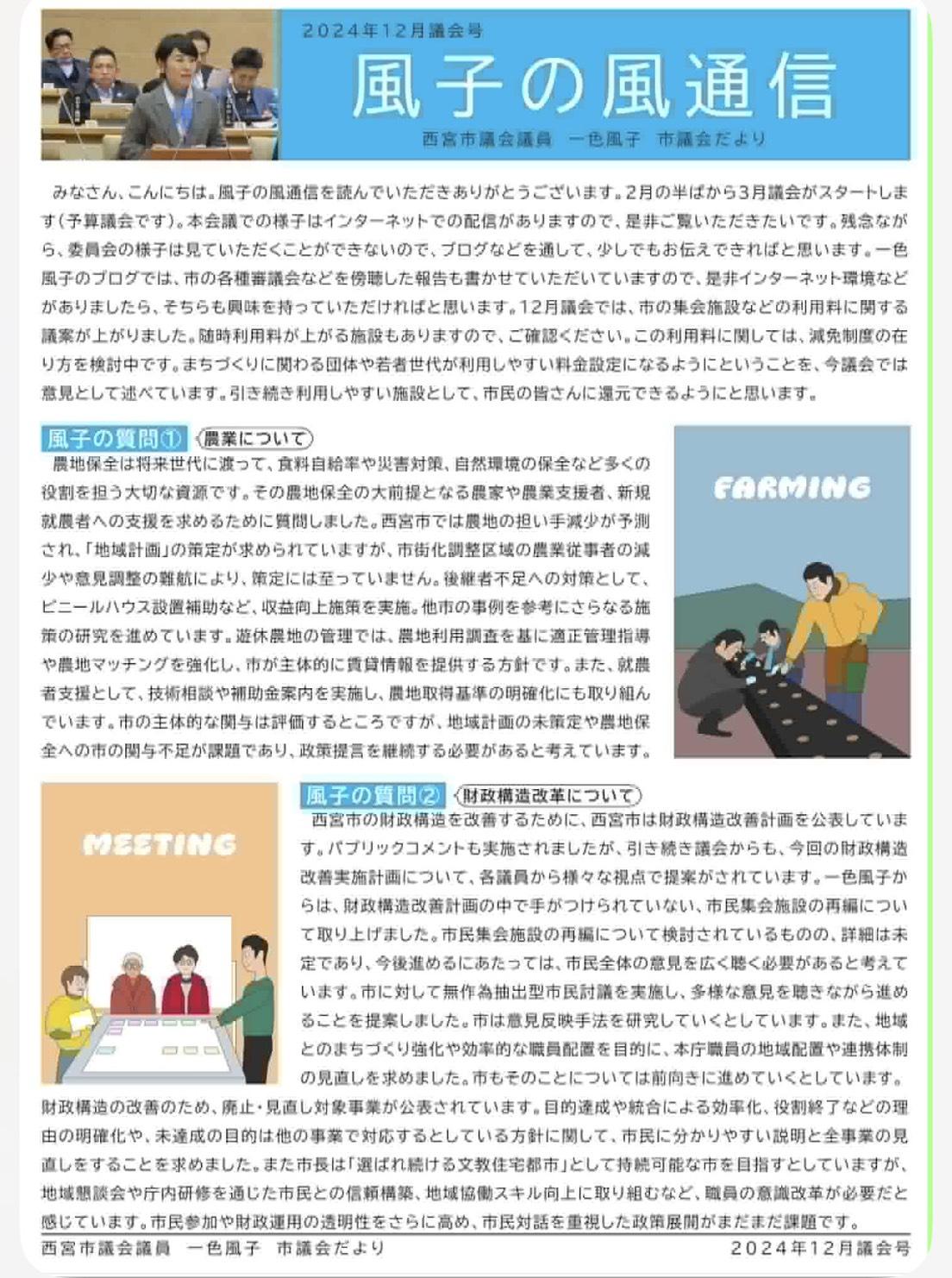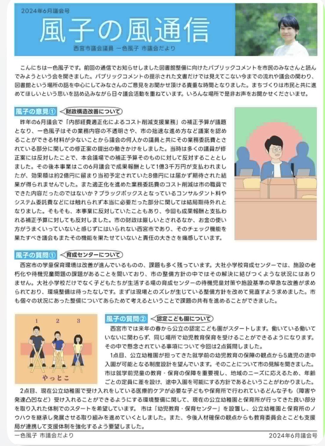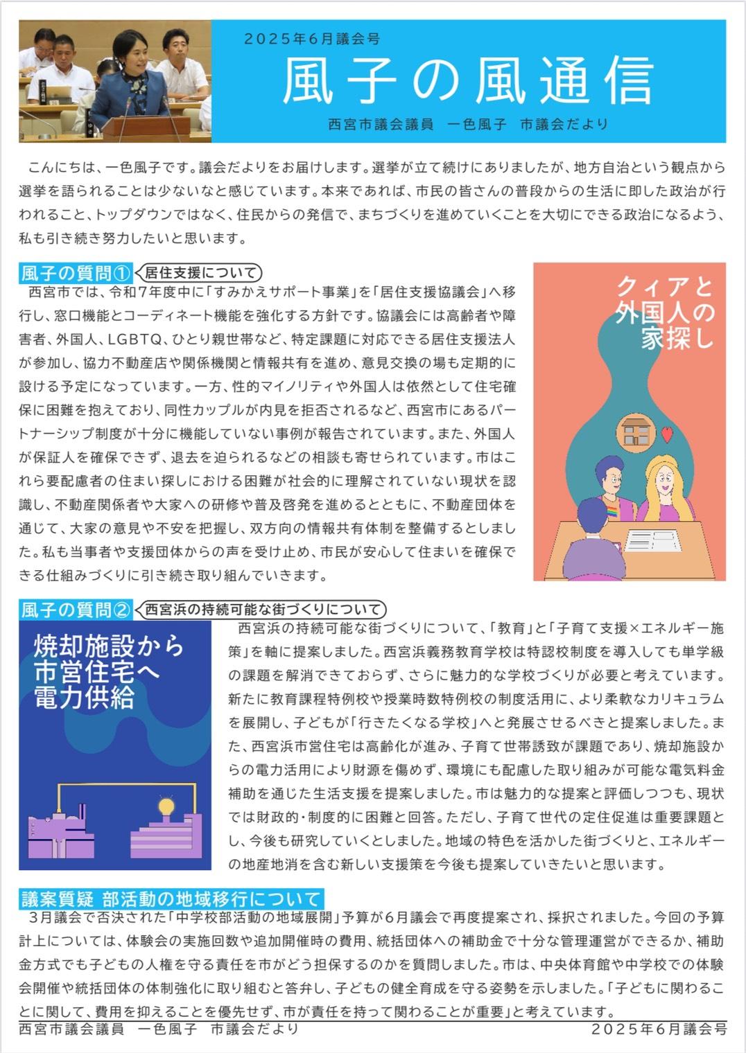 議会毎に発行している風子の風通信を過去のものも含めて読んでいただけます。