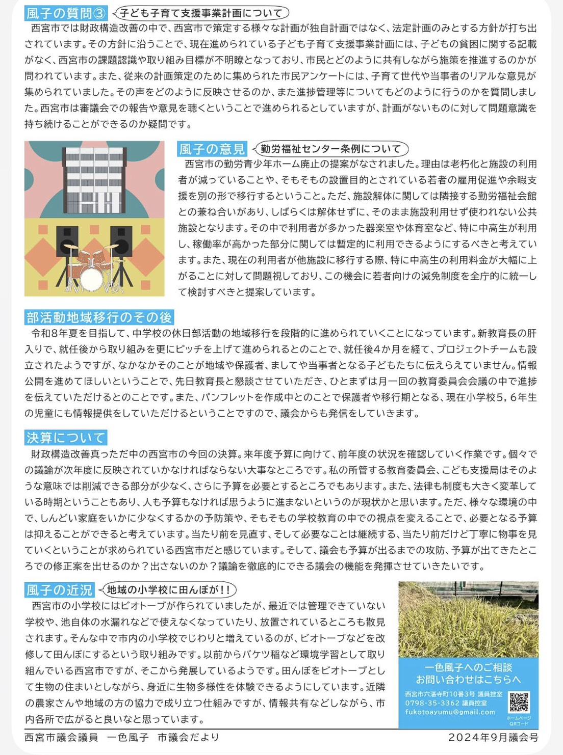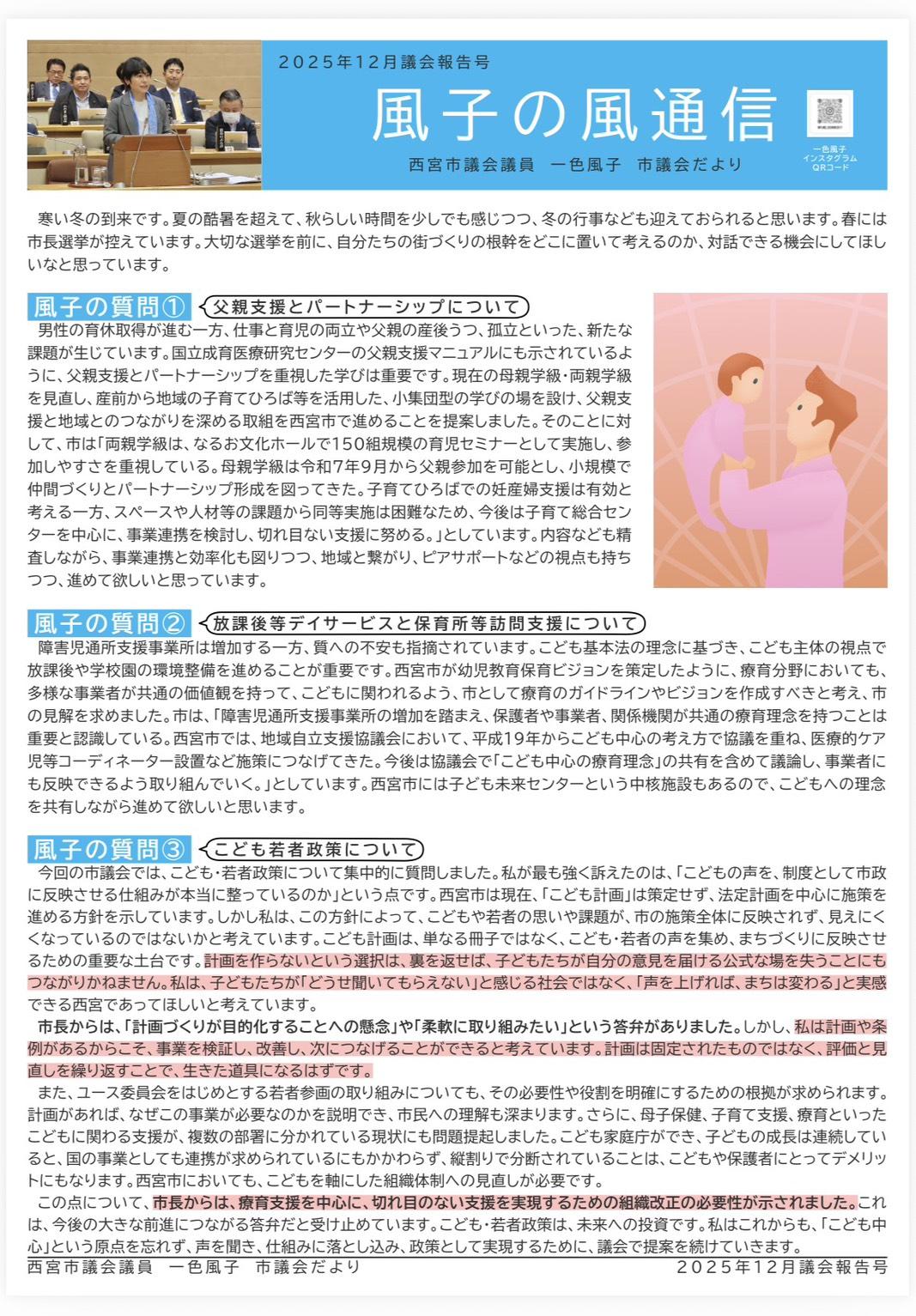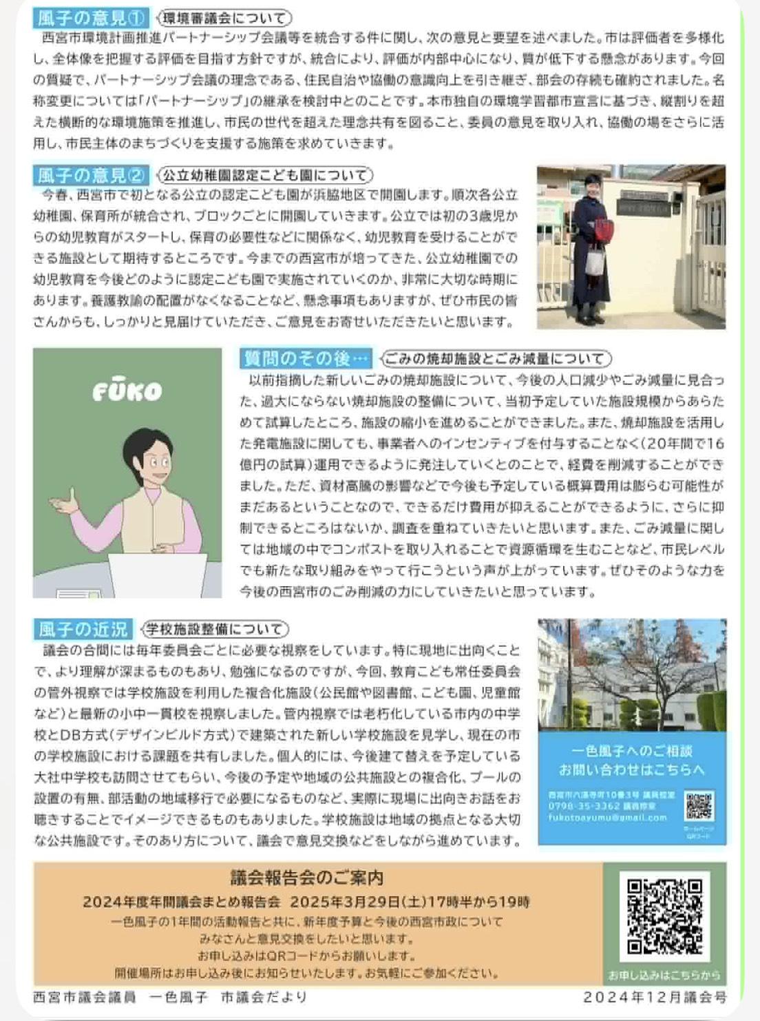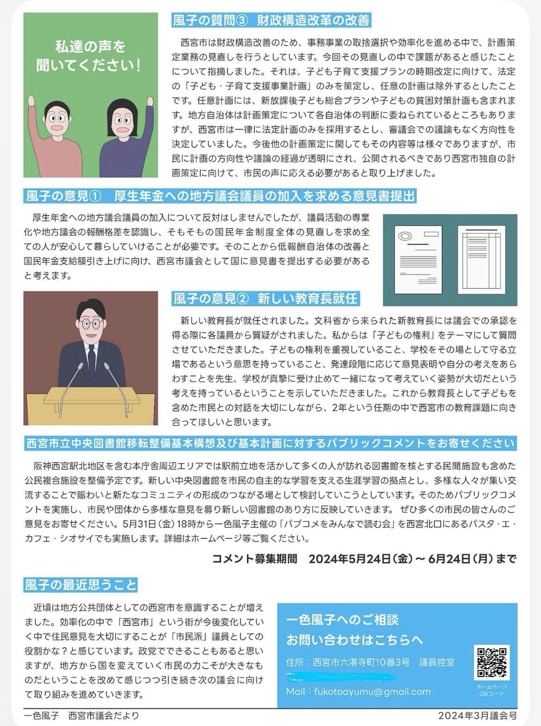 議会毎に発行している風子の風通信を過去のものも含めて読んでいただけます。